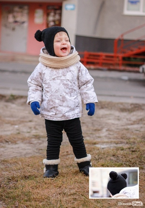 Хотілося б ще зауважити щодо шарфа дитини, який має грубу в’язку та по-модному зав’язаний.
