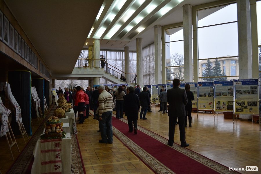 До слова, у драмтеатрі представили презентаційні стенди виставки «Волинь-75», де можна було оглянути виставку книг, інформацію про волинські підприємства та короваї, що передадуть українським бійцям на Схід.