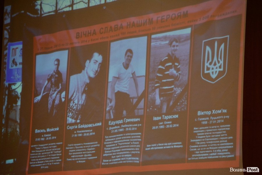 Голова Волинської обласної державної адміністрації Володимир Гунчик виступив з вітальним словом та зачитав звернення Президента України Петра Порошенка, де йшлося про волинян, які одними із перших стали на захист української незалежності під час Революції гідності.