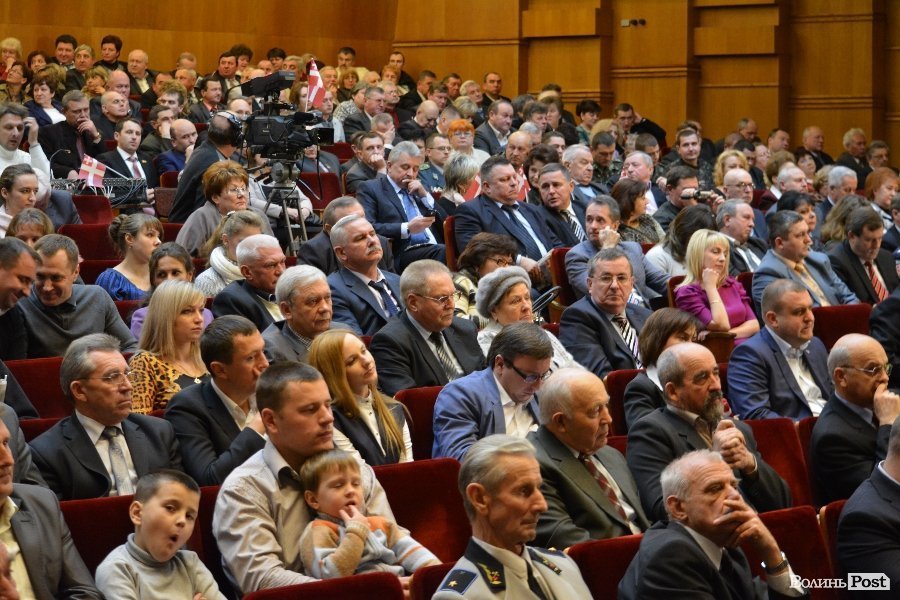 На урочистості 4 грудня у драмтеатрі зібралися політики, історики, бізнесмени, письменники, краєзнавці, священнослужителі та інші відомі волиняни.