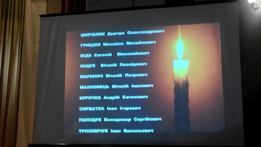 У залі культурно-мистецького центру переглядали документальний фільм місцевої студії телебачення «Володимир», де на кадрах були військові, які загинули в АТО.