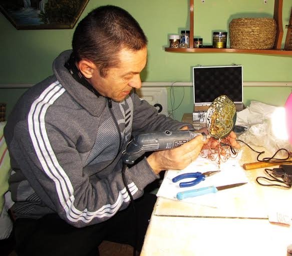У його руках звичайні шкаралупи від курячих, качиних, гусячих і страусиних яєць перетворюються на вишукані колекційні предмети інтер’єру – мініатюрні шкатулки з позолотою та каменями Swarovski, самобутні яйця «а-ля Фаберже» з автентичними українськими мотивами і навіть унікальні світильники.