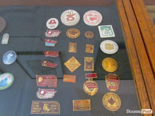 Ще один блок експозиції відображає промисловий потенціал Волині, зокрема, ювілейні значки і нагрудні знаки, приурочені ювілейним датам Луцького автомобільного заводу, Луцького цукрового заводу, природоохоронну діяльність Шацького національного парку, радянську історію Волині: значки комсомольської та піонерської організацій, учасників соціалістичних змагань.