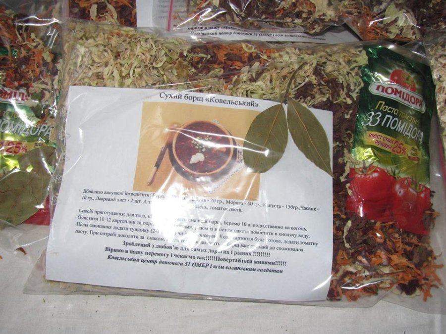 Активісти ковельського центру допомоги бійцям 51 ОМБР зібрали першу партію "сухого" борщу для бійців.