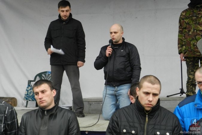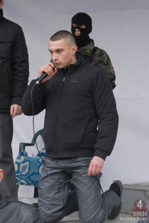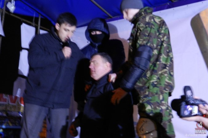 Не оминула хвилинка «слави» і заступника начальника обласного управління МВС Володимира Поліщука, якого активісти поставили на коліна силоміць.
