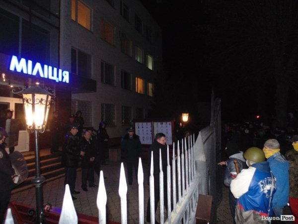 Розпочався цей день із мирного нічного пікету під стінами міського управління міліції на вулиці Грибоєдова. Тут майданівці провели переговори з заступником обласного управління МВС Володимиром Поліщуком, який підписав документ в якому силовики засуджували дії колег в Києві, обіцяли не застосовувати силу до волинських демонстрантів та нести службу за межами Волині.