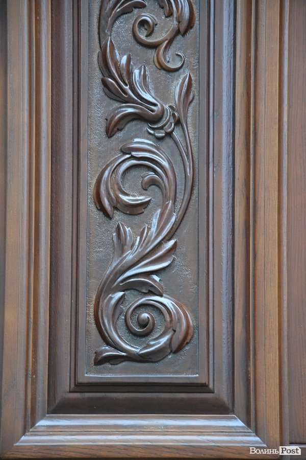 Нові двері в костелі святих Петра і Павла у Луцьку виготовлені із дуба. Вони є тоншими за своїх попередників і щільно прилягають до стін храму.