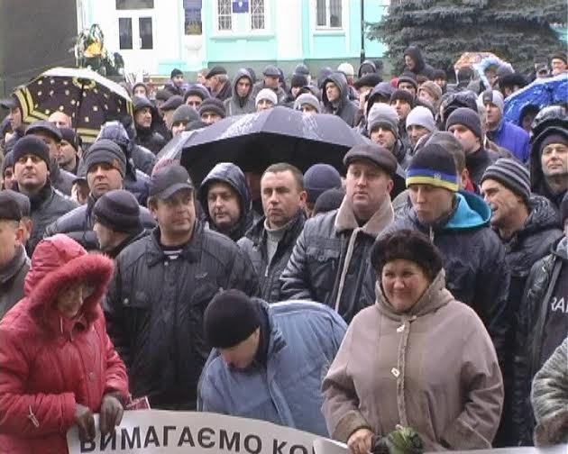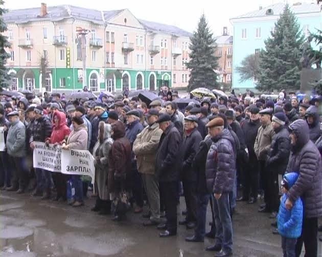 Гірники 1,9,10 та Бужанської копалень вийшли на майдан Незалежності, аби висловити своє незадоволення діями влади, положеннями коаліційної угоди та затримкою заробітної плати.