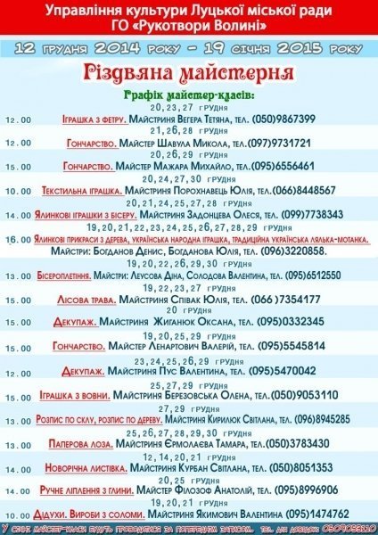 Координатор проекту - управління культури Луцької міської ради, ГО “Рукотвори Волині”, телефон для довідок 720447.