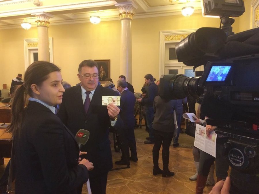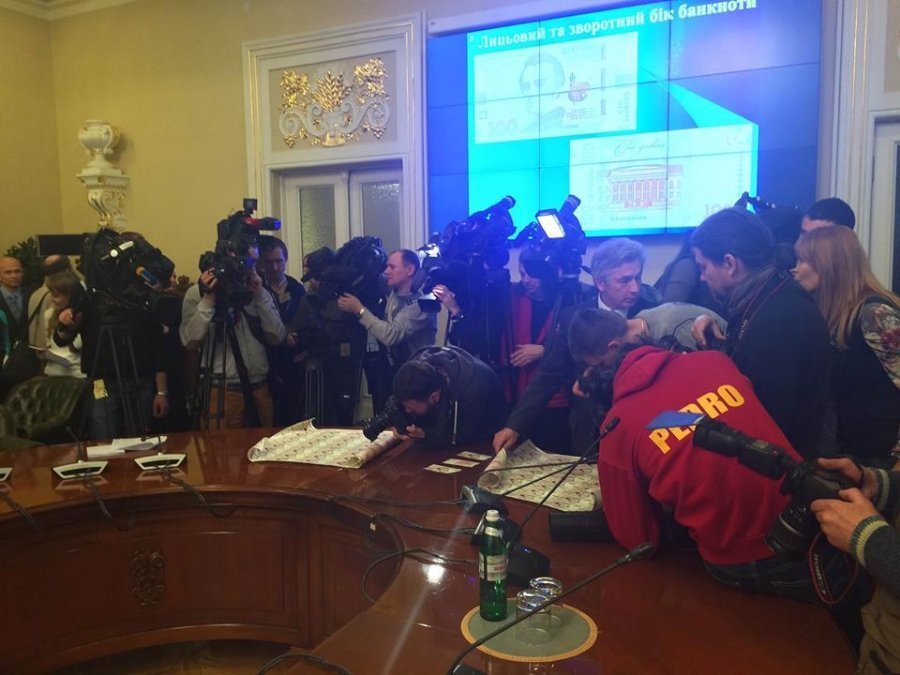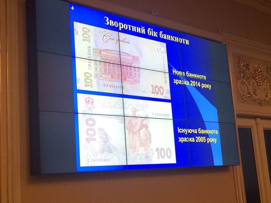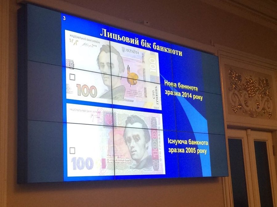 Сьогодні, 29 грудня 2014 року, Національний банк України презентував банкноту номіналом 100 гривень зразка 2014 року з удосконаленою системою захисту
