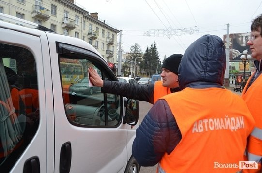 Першого весняного місяця у Луцьку почали «вчити» водіїв правил дорожнього руху. В рамках акції «Стоп Хам» автомайданівці розклеювали наліпки на лобові шиби автівок, що припаркувалися з порушенням правил дорожнього руху.