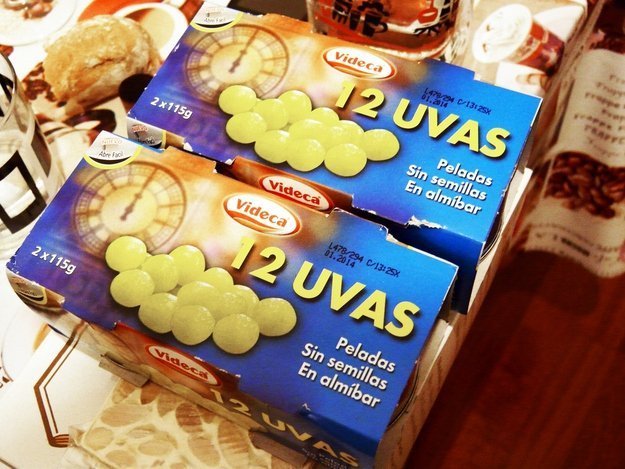 З кожним ударом годинника опівночі ви повинні з’їсти по одній виноградинці. В магазинах для цього навіть продають спеціальні набори.