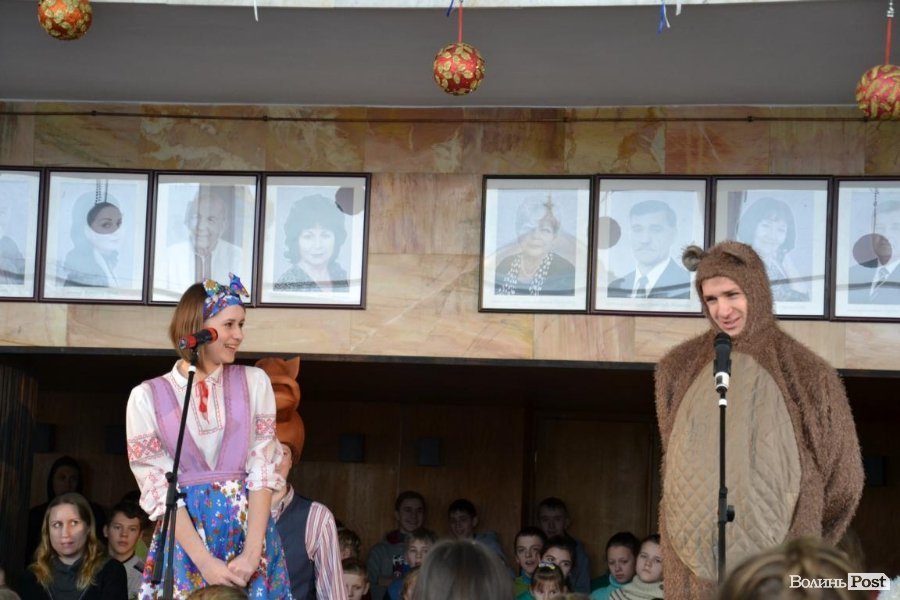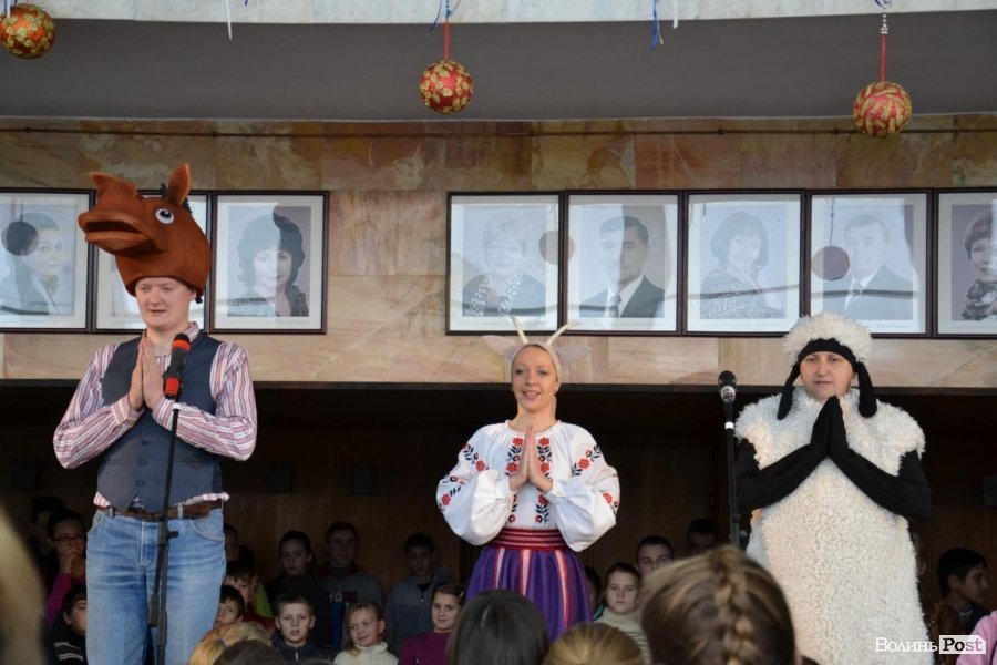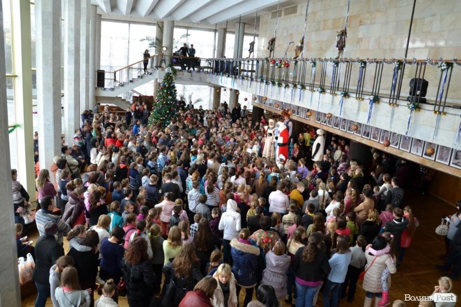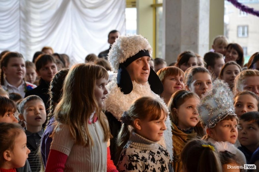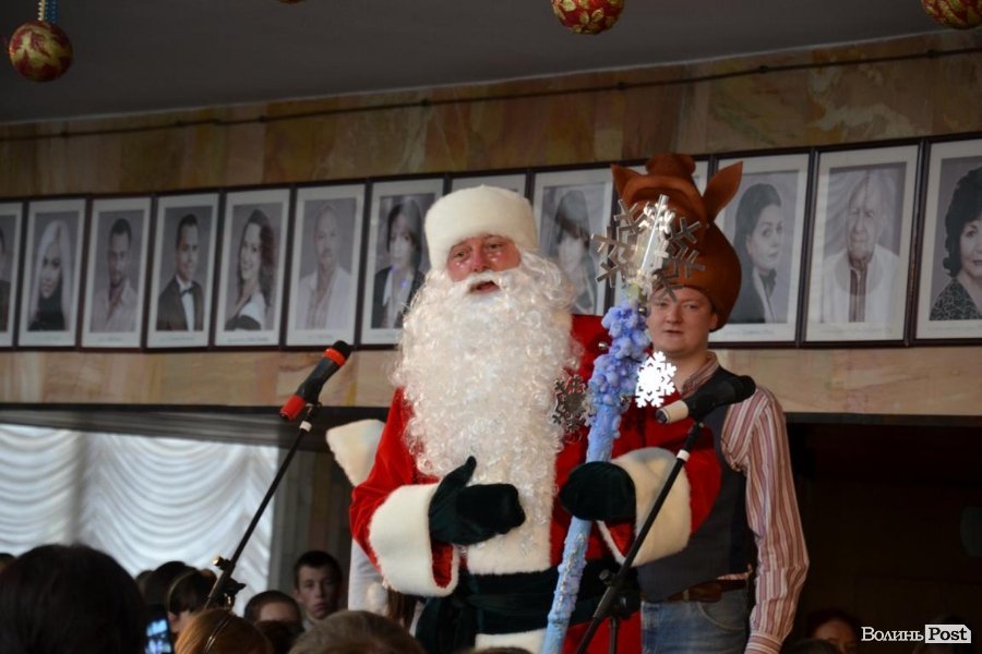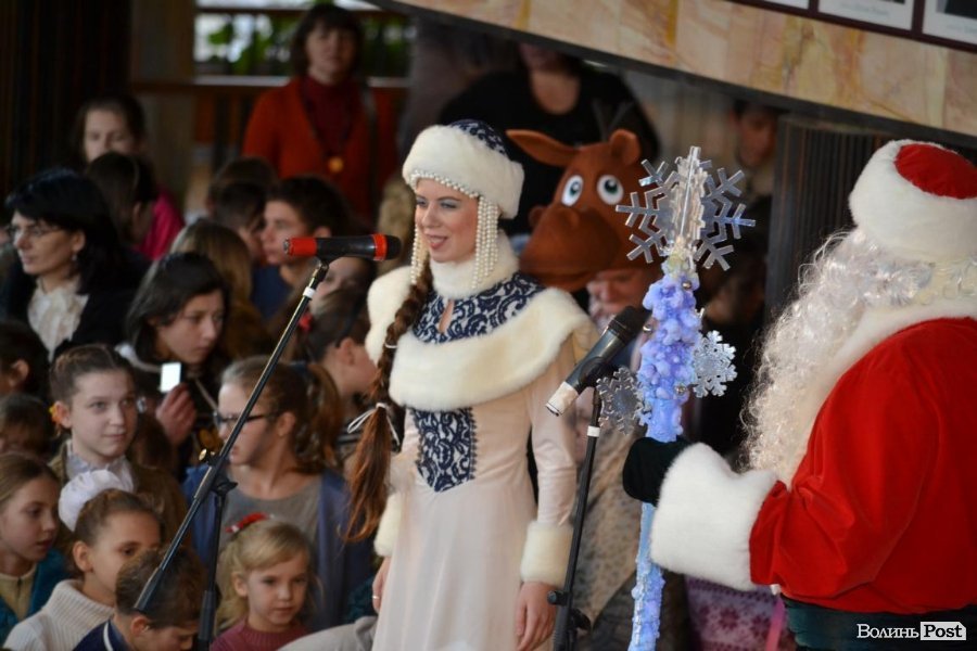 Потім у залі муздрамтеатру Дід Мороз представив дітям та їх батькам почесних гостей: голову облдержадміністрації Володимира Гунчика та луцького міського голову Миколу Романюка. Посадовці бажали дітям щастя, святкового настрою, здобутків у житті та миру.