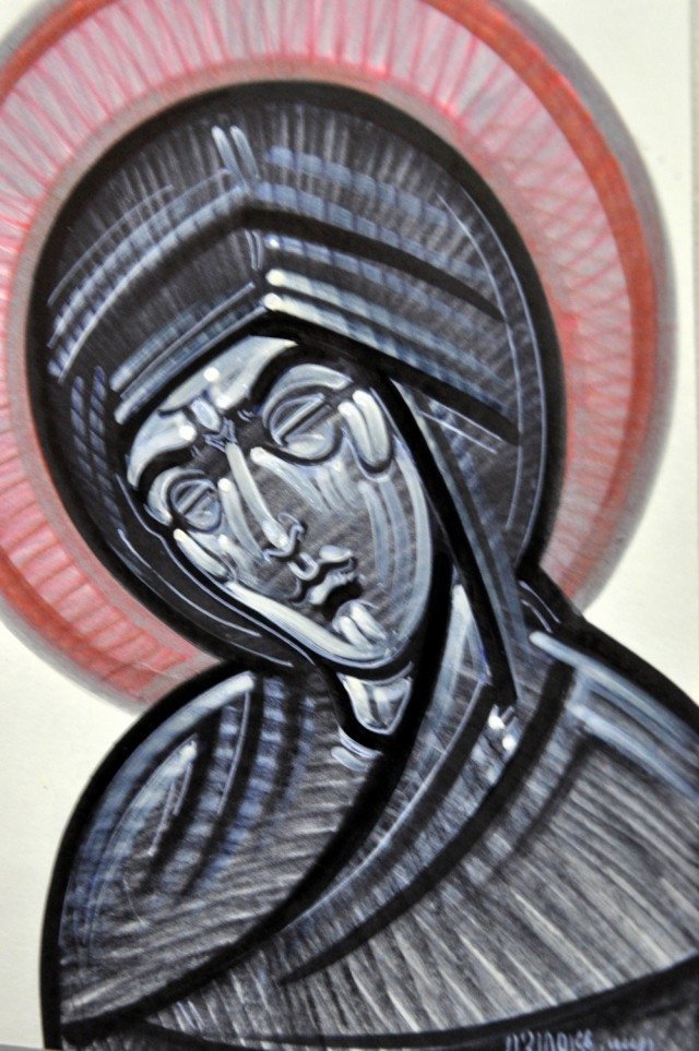 “Малював по одній роботі щодня, хіба хворів чи був надто зайнятий, тоді надолужував. Починав із січня, 18 лютого – найважчий день, тоді були перші жертви на Майдані, саме тому на календарі зображена червоним кольором Богородиця. Техніка звичайна – різнокольорові маркери та картон. Були святі, які одразу “лягали”, їх легко було малювати, а були такі, що навіть після прочитання їхнього житія, перегляду робіт іконописців було важко малювати”, – каже Сергій Радкевич.