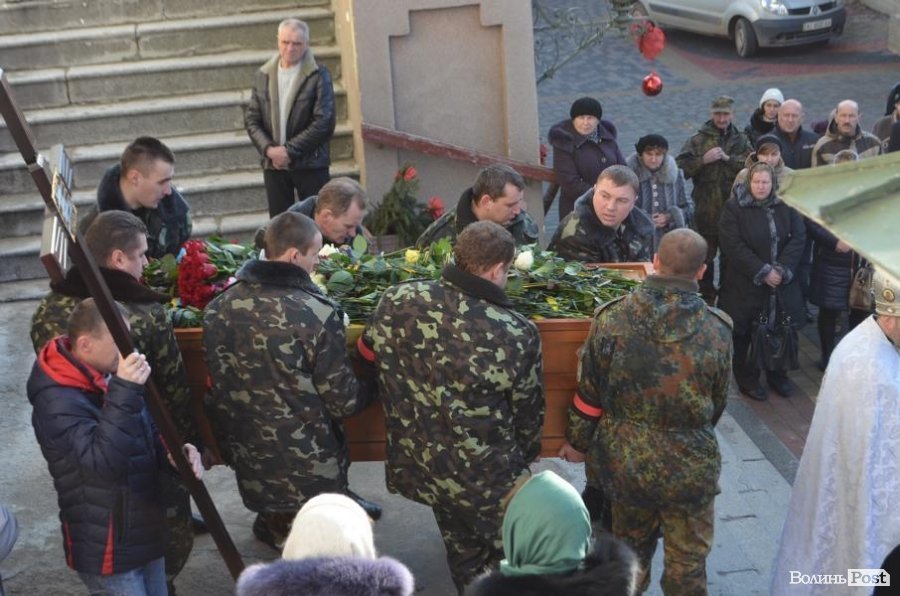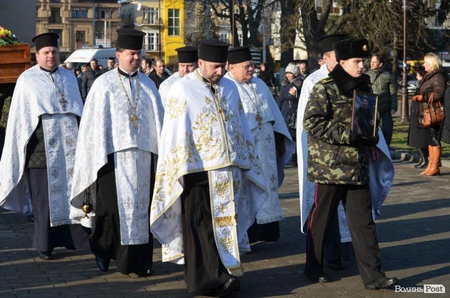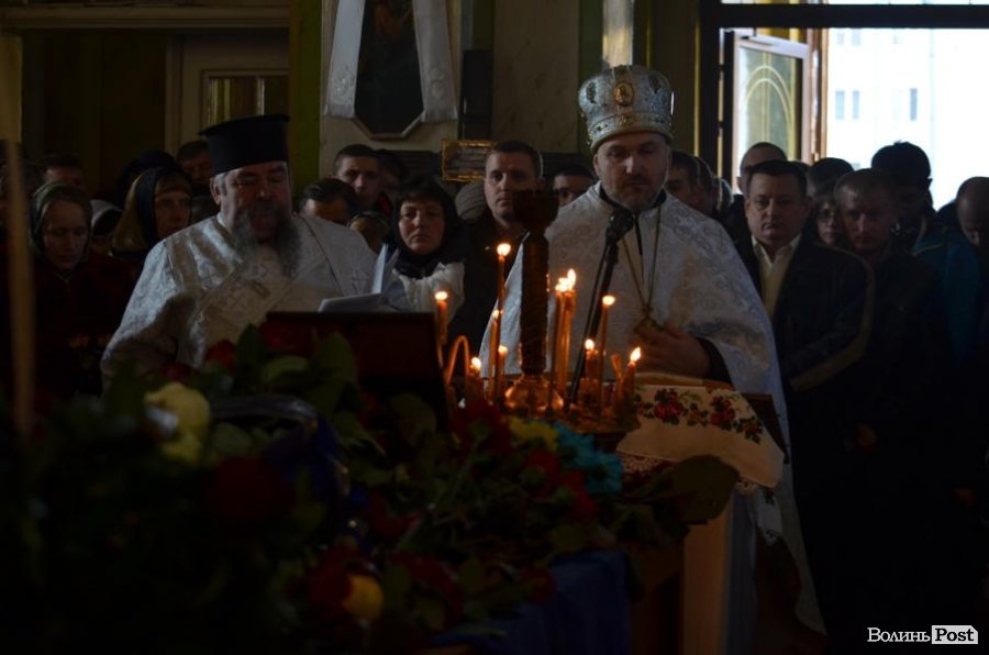 Протоієрей Віталій Собко зазначив, що лучани, які прийшли попрощатися із загиблим волинським бійцем, підносять щиру молитву до Бога, аби Він прийняв у батьківські обійми душу молодого хлопця, який, «на жаль, уже завершив своє земне життя».