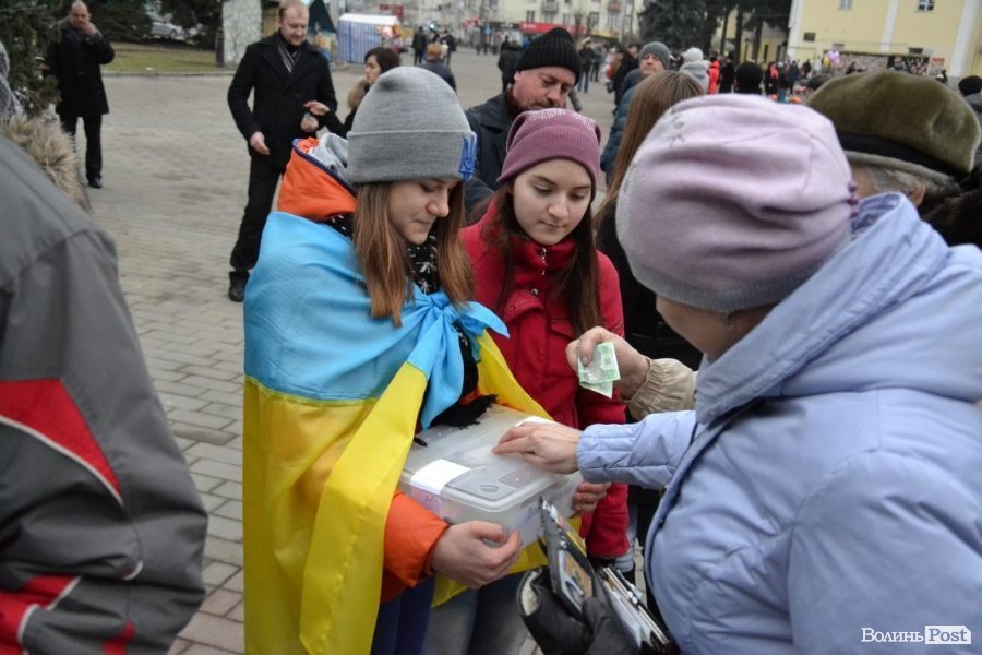 Напередодні ходи на Театральному майдані Луцька провели невелике віче, щоб «нагадати» владі про необхідність допомагати бійцям а також привернути увагу до трагедії смерті тисяч людей на Донбасі.