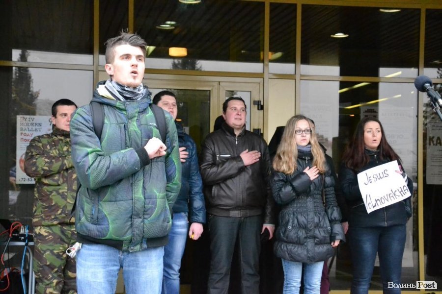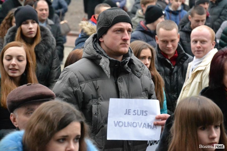 Можливо я висловлю думку, яка викличе гнівну реакцію, але чомусь не хотілося прийти сьогодні на цей захід з табличкою "Я Волноваха", бо Я - ВОЛИНЬ, Я - УКРАЇНА! УКРАЇНА - змордована війною з осатанілими москалями та звироднілими донбасянами і лугандонами. ВОЛИНЬ - згорьована і сплакана за своїми кращими загиблими синами. Щось не пам'ятаю якоїсь подібної реакції на трагічну загибель сотень наших солдат, зрадницьки і підло розстріляних під Іловайськом і тією ж Волновахою (51 бригада). Не можу зрозуміти таку змавповану з французької акцію.Така акція, як на мене, і у Фрації викликала певний сумнів. Вбивство журналістів - це дикунство, але як називається глум над релігійними почуттями мусульман? Вбивство мирних жителів - це трагедія, але як називається те, що ці ж мирні жителі зробили з усіма нами, привівши війну на нашу землю? Чи не вони кликали путіна і расєю? Чи не вони ходили на референдуми і сепаратистські мітинги? Чи не вони здають позиції наших бійців і стріляють їм у спину? Чи не вони під щедрим дарами приносять нашим солдатам отруєну їжу і замінований мед? А звідки і куди їхали ці мирні жителі? З нашої території на "свою"? Це що, до банкоматів їздили за огидними їм гривнями? Вони загинули від зброї своїх же "визволителів",які воюють з хунтою і бандерівцями. А тому я не відчуваю своєї причетності до цих подій. Мені здається, що малолюдна акція пояснюється тим, що так думаю не одна я (може помиляюся). Коли прощаються з нашими дорогими хлопчиками, то приходять висловити своє співчуття і вдячність у сотні разів більше лучан.