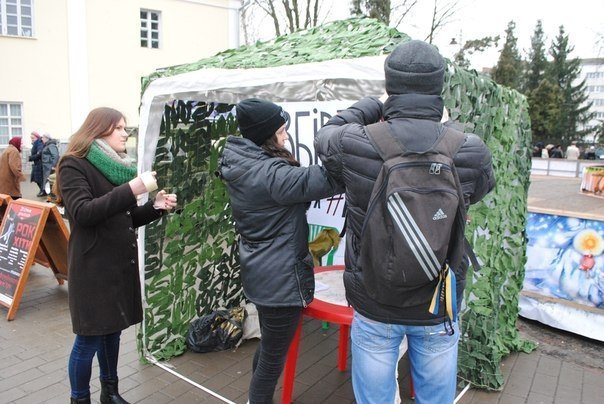 На Театральному майдані Луцька стартував другий етап акції «Вже зима! Одягни армію!». Студенти ВТ НУХТ та громадські активісти збирають теплі речі й інші необхідні засоби для бійців АТО.