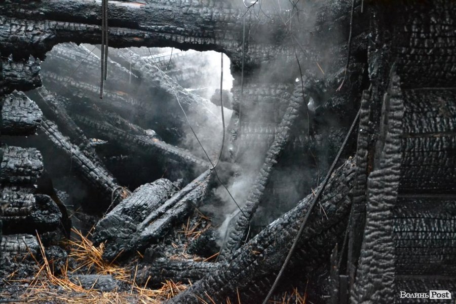 Через пожежу одна із будівель у обійсті депутата Волинської облради Василя Столяра дуже постраждала - залишився лише обгорілий каркас дерев’яної споруди.