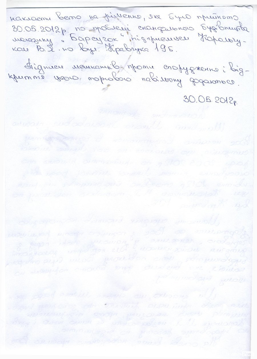 Нагадаємо, конфлікт між мешканцями будинків і підприємцем Віктором Корольчуком, що хотів побудувати тут магазин, виник ще у квітні 2010 року.