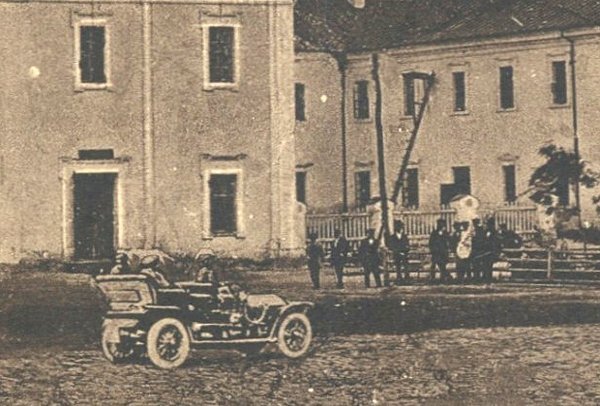 Луцький урядовець Станіслав Дзєжановський біля службового авто у дворі Волинського воєводства. Розташовувалося у монастирі бернардинів на теперішньому Театральному майдані