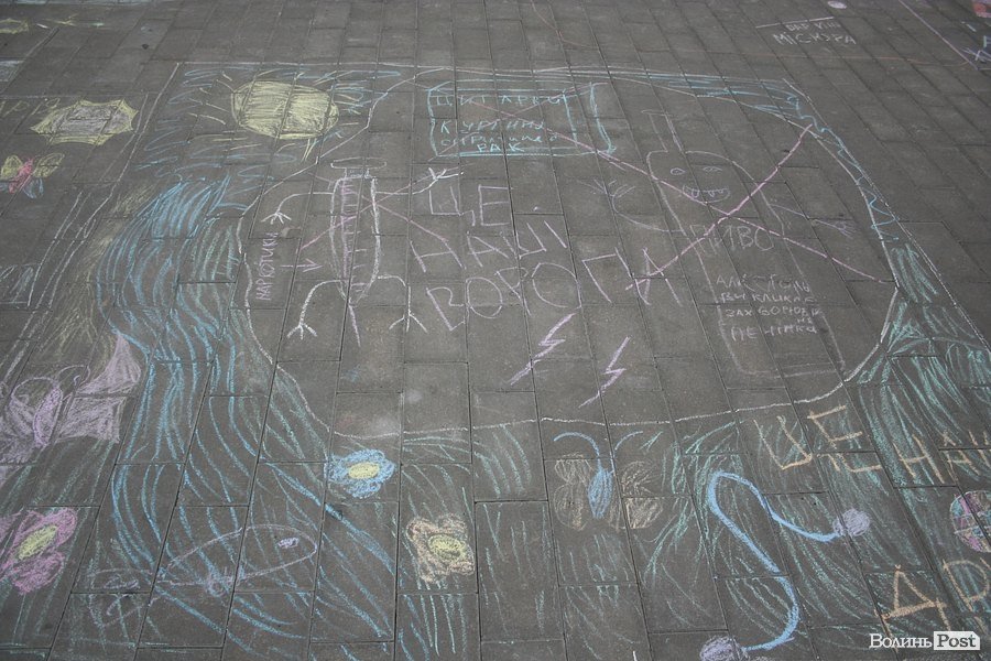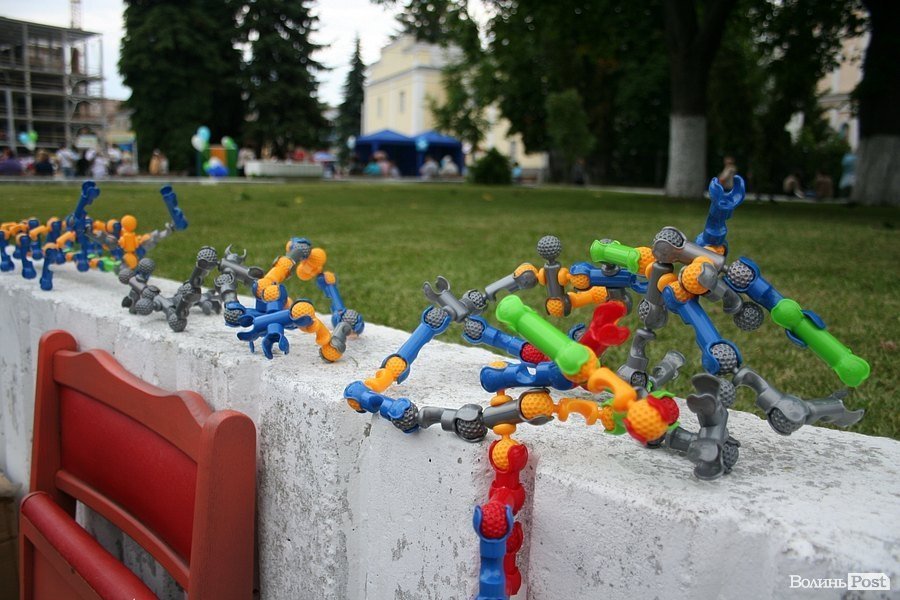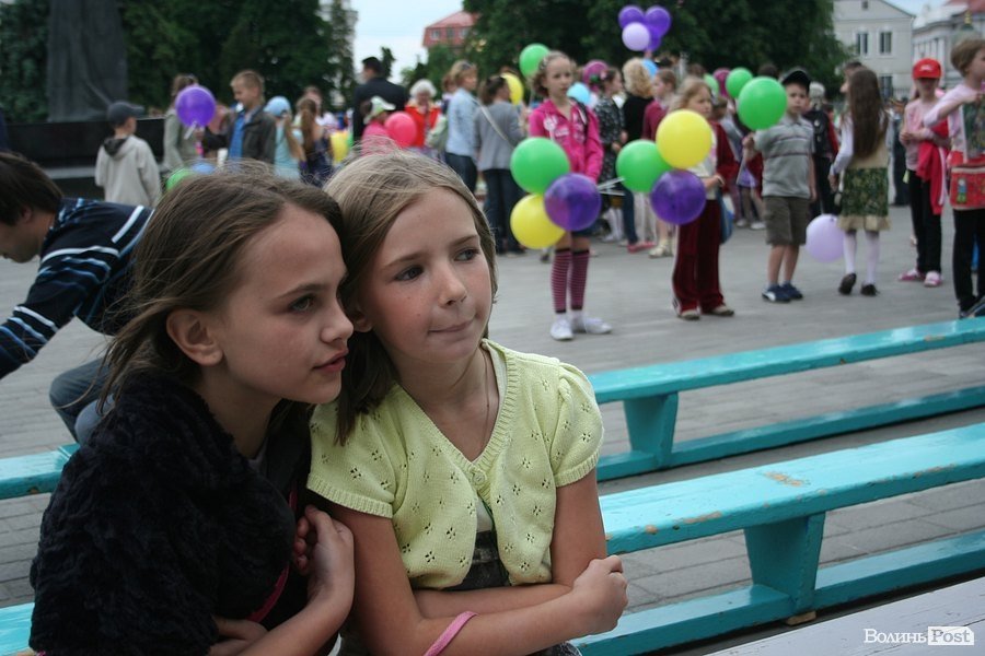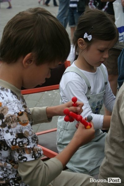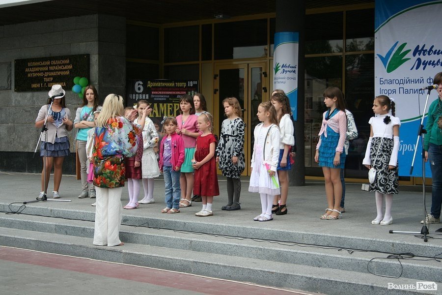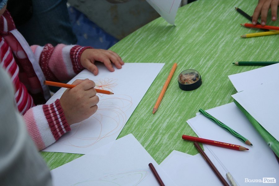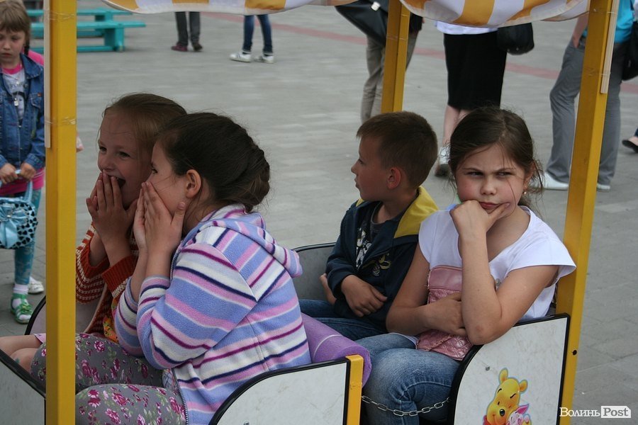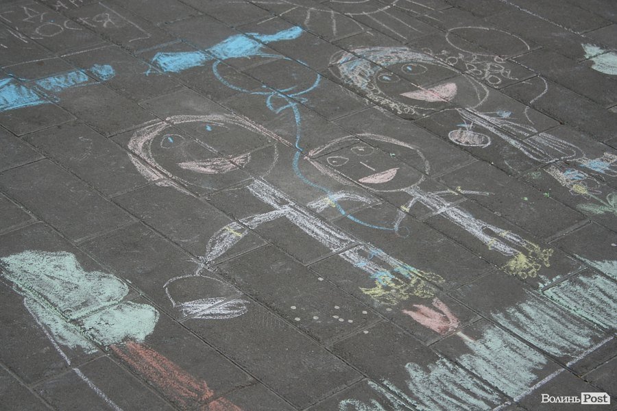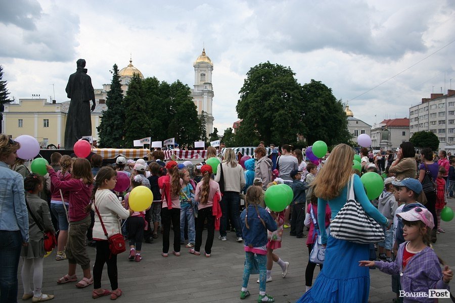 У центрі Луцька на Театральному майдані в День захисту дітей організували конкурс малюнка, збирали дитячі фантазії у скриньку та вчили дітей грати рок.
