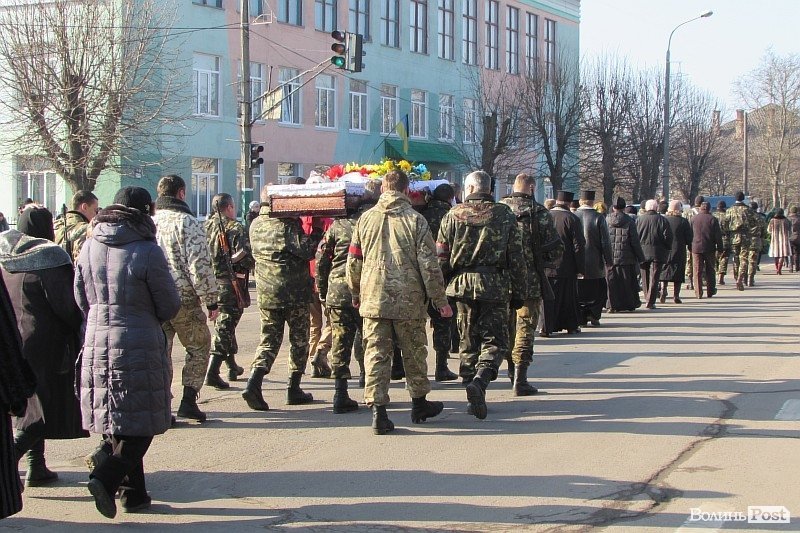 У Володимирі-Волинському в останню путь провели бійя Дмитра Головіна, який загинув від поранення в голову на початку тижня в районі Дебальцевого.