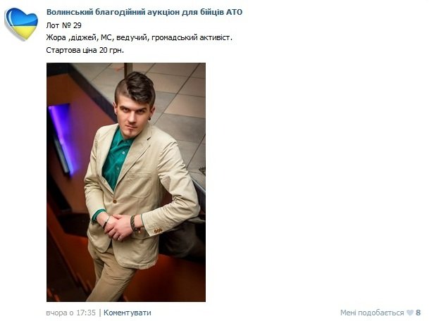 У коментарі ВолиньPost волонтерка обласного координаційного центру допомоги учасникам АТО та організатор заходу Ірина Оніщук розповіла, що лоти учасників можна переглянути та придбати у спільноті Вконтакті - «Волинський благодійний аукціон для бійців АТО».