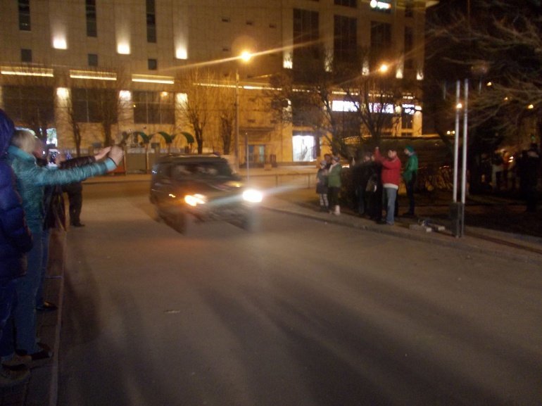 Бійців зустрічали з короваєм, плакатами, надувними синіми і жовтими кульками і з шампанським. Також лунали вигуки «Герої» та «Слава Україні». Усі разом виконали Гімн України.