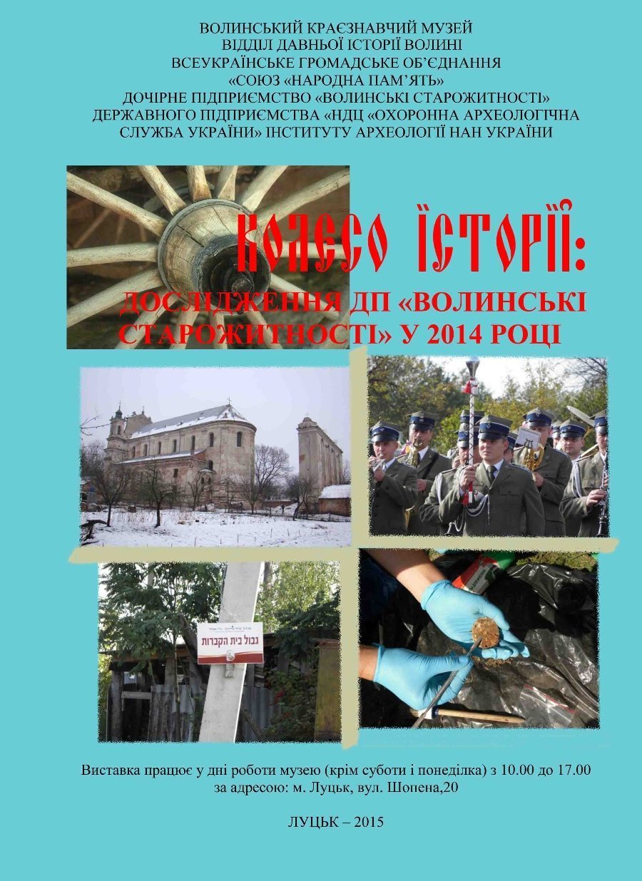 У приміщенні Волинського краєзнавчого музею відбудеться відкриття виставки «Колесо історії: Дослідження ДП «Волинські старожитності» у 2014 році».
