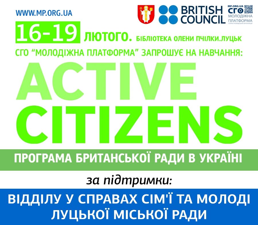 Британська Рада в Україні та СГО «Молодіжна Платформа» запрошують до участі у навчанні за програмою «Активні громадяни».