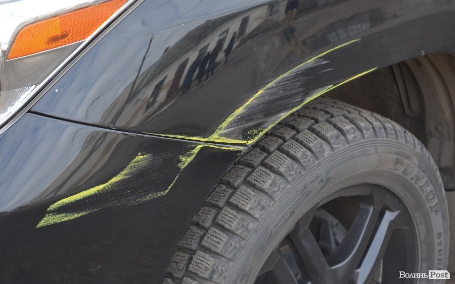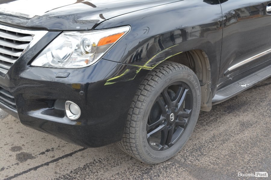 Також поруч з маршрутним таксі стояв припаркований Lexus, у якого на бампері залишилися сліди жовтої фарби. Чи була фарба на автівці раніше, чи слід залишила маршрутка, яка "котилася" прямо - невідомо.