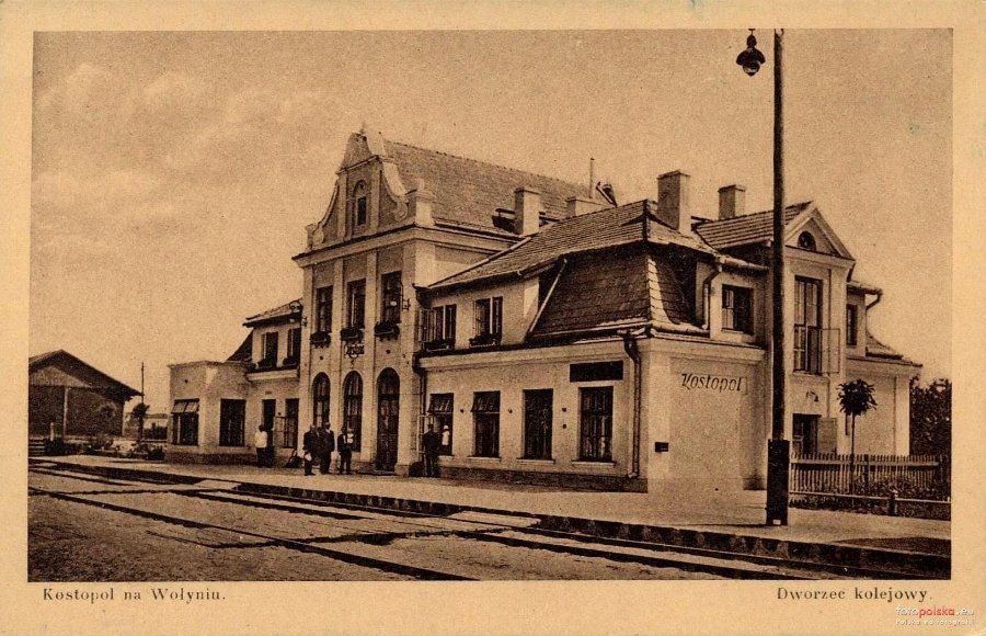 6. Зовсім іншого типу вокзал у Костополі. Він зберігся і використовується за призначенням. Його збудували у міжвоєнний період у так званому «народному стилі».