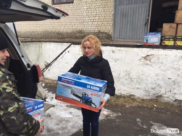 На Рівненський загальновійськовий полігон привезли електропили, бензопили та сокири від благодійного фонду «Волинська родина».