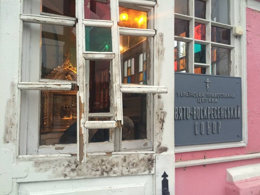 Вранці, 12 лютого, до Воскресенського кафедрального собору УПЦ вдерлися вандали. Невідомі зламали двері.
