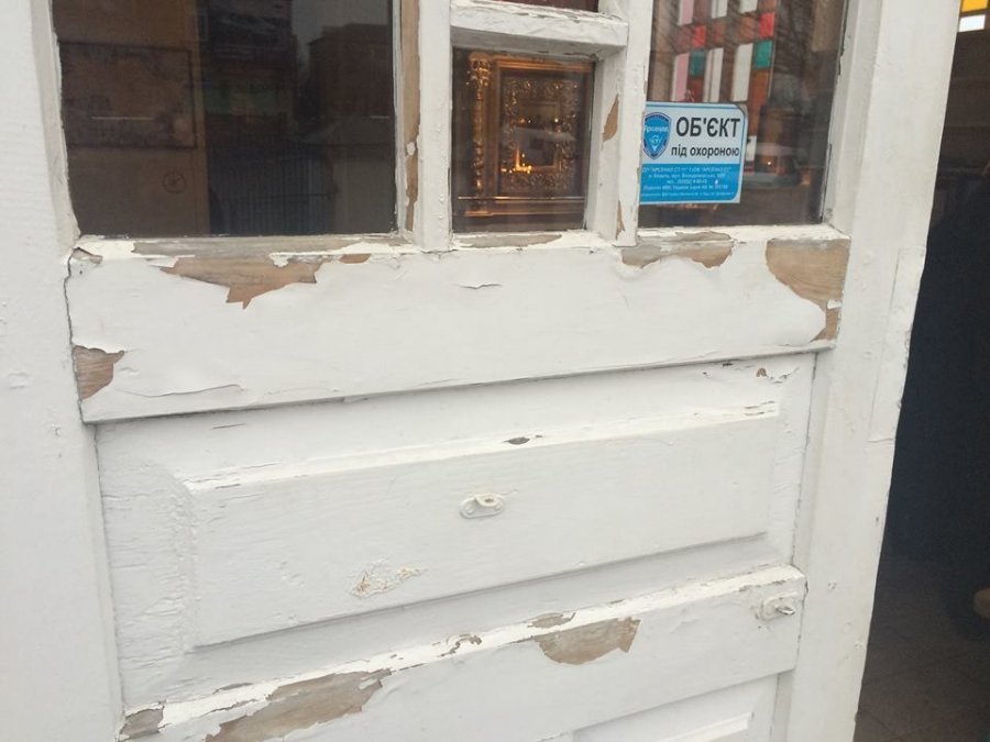 На зовнішній ремонт грошей вистачило, а на двері нормальні ні.. Головне наклейки вчепити *обєкт під охороною*