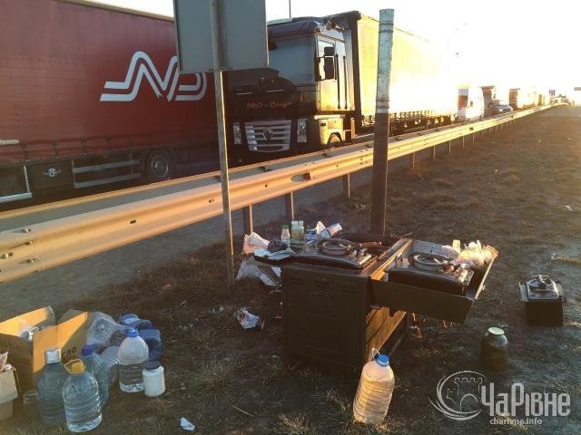 Близько десятка людей провели на дорозі цілу ніч. Вони грілись біля буржуйок, навіть приготували кашу