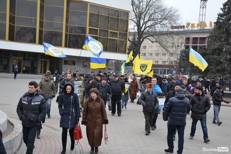 Далі мітингарі рушили до головного входу Управління МВС України у Волинській області. Їм не вдалося зустрітися із головним міліціонером області Петром Шпигою, бо його не було на місці. Тому свої вимоги громадяни адресували заступникові Шпиги.
