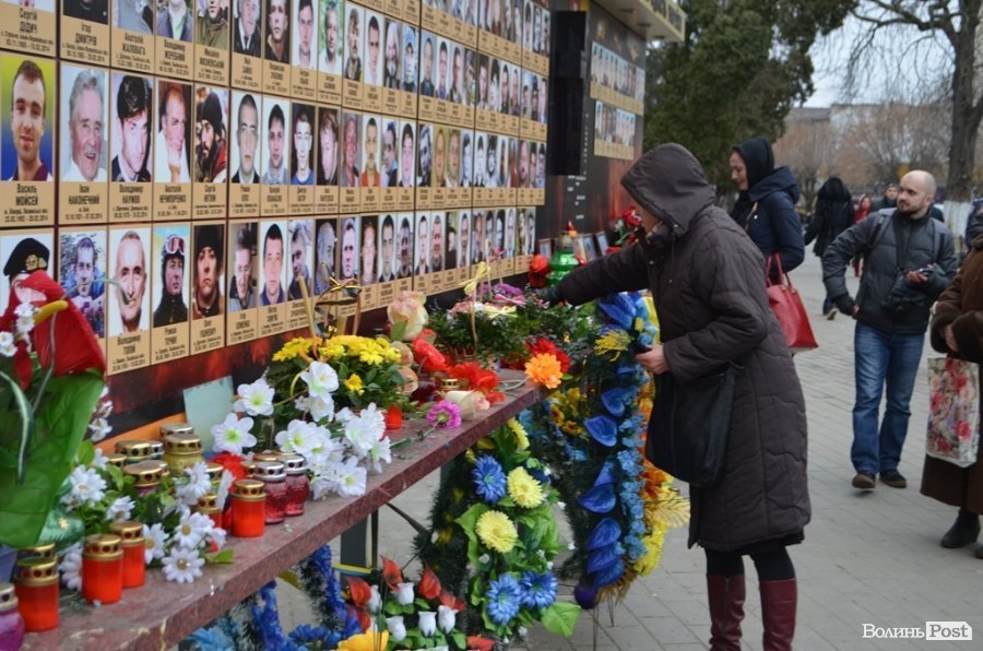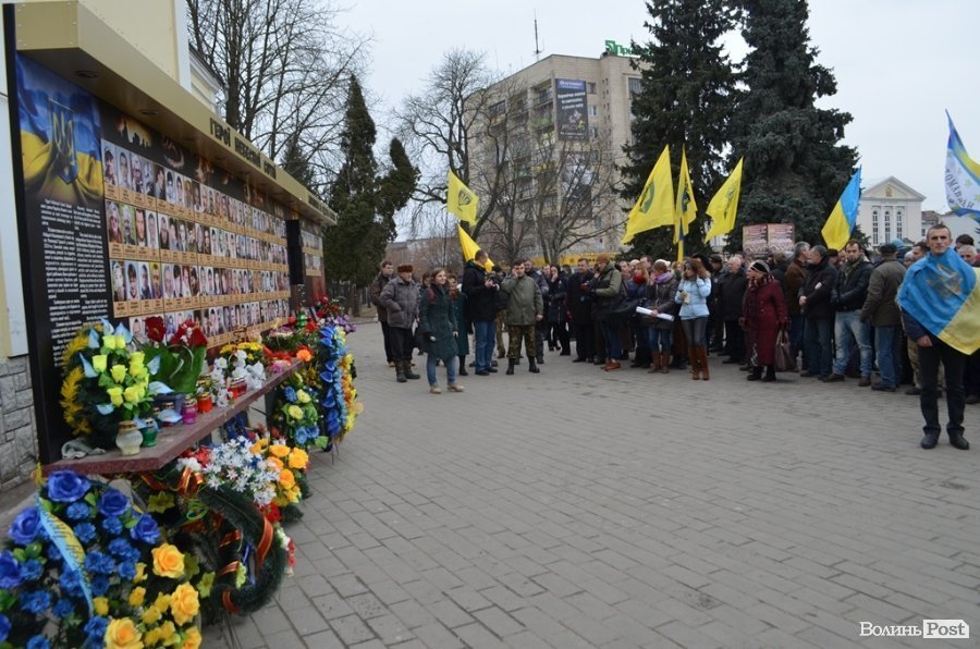 Активісти вшанували пам'ять полеглих майданівців у Києві. Далі пішли до будівлі Волинської облдержадміністрації, щоб поспілкуватись із очільником області Володимиром Гунчиком.