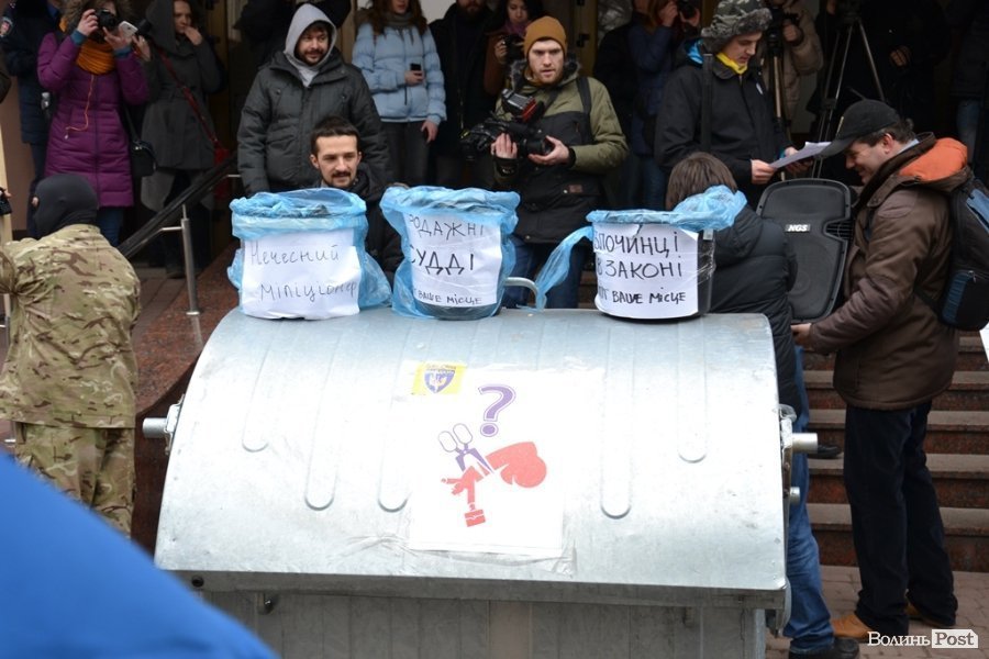 Після «відвідин» міліціонерів, представники громадськості, взявши із собою смітники, рушили на вулицю Лесі Українки, де знаходиться Луцький міськрайонний суд Волинської області.