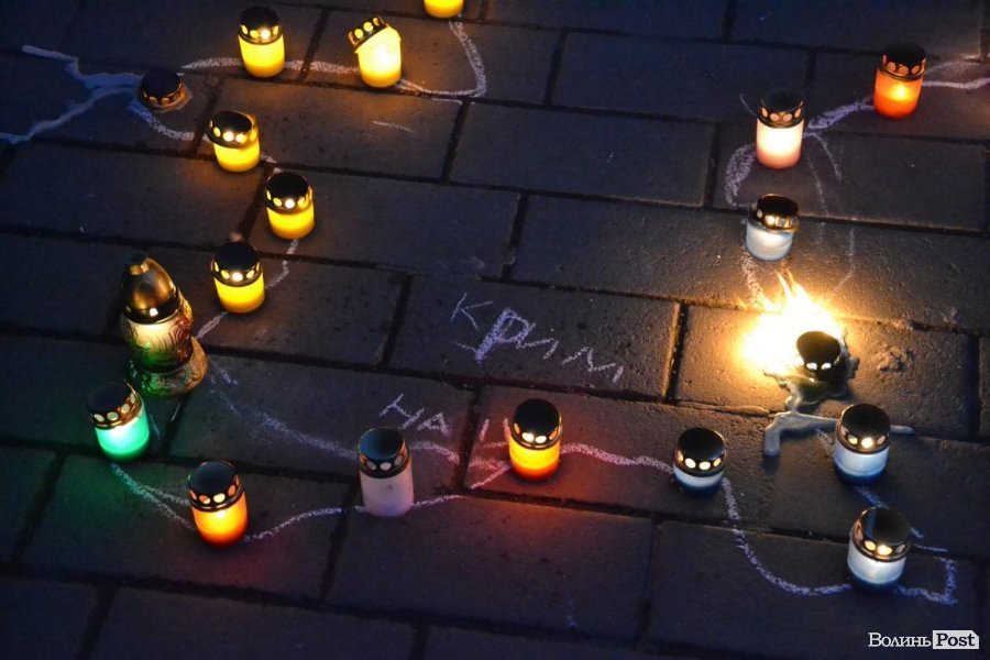 Напередодні громадські активісти виклали із лампадок контур українського кордону, щоб нагадати, що ми єдині у свої пам’яті про загиблих у боротьбі за незалежність.