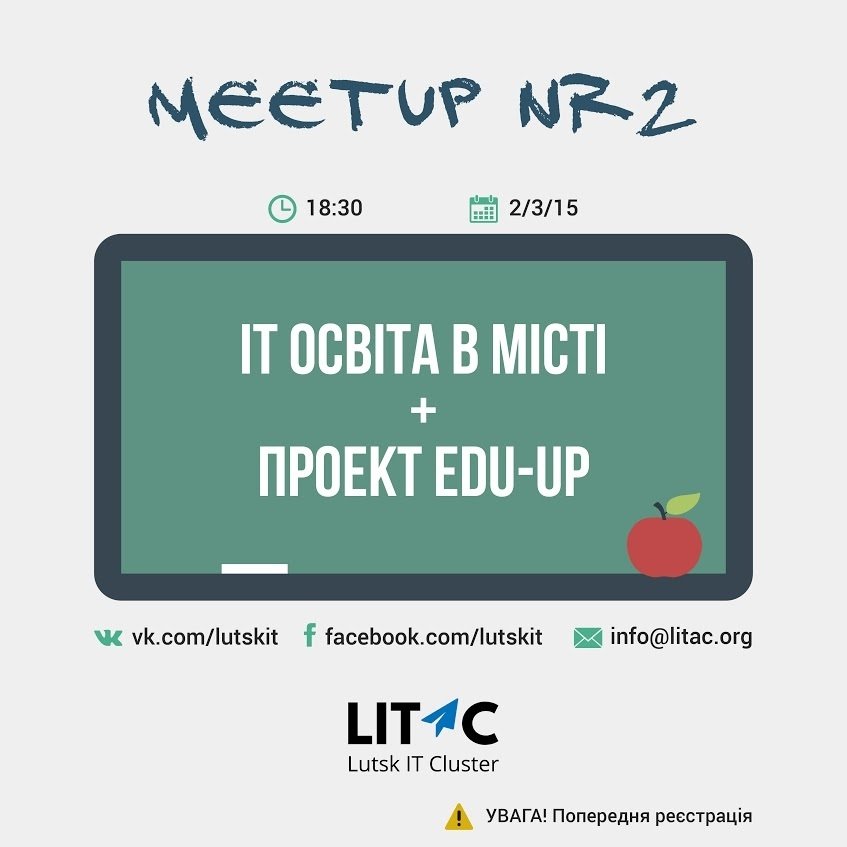 Друга зустріч Луцького ІТ-кластеру буде присвячена обговоренню проекту Edu Up між ІТ-спеціалістами міста та представниками вишів міста.