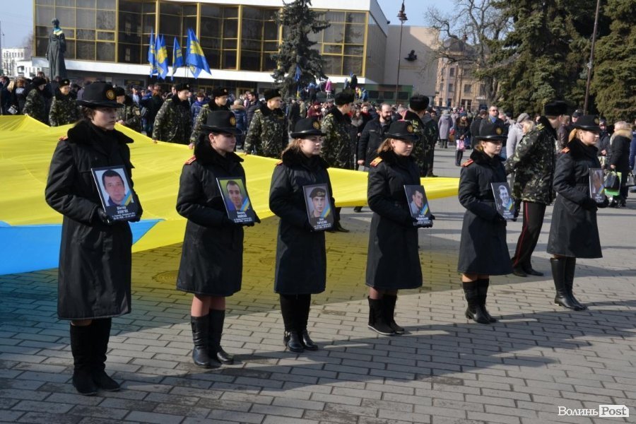 Сотні лучан долучилися до жалобної ходи від Театрального майдану Луцька до Меморіалу вічної слави, де знаходиться могила Героя Майдану Василя Мойсея.