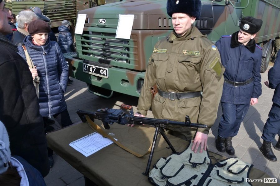 Розпочалася вона у центрі Луцька де саме тривав благодійний аукціон для збору коштів бійцям АТО. Лучани мали можливість приміряти бронежилет, залізти у бронетехніку та спробувати розібрати автомат. Порядок під час дійства охороняли зокрема бійці Нацгвардії. Також вони демонстрували техніку і зброю.