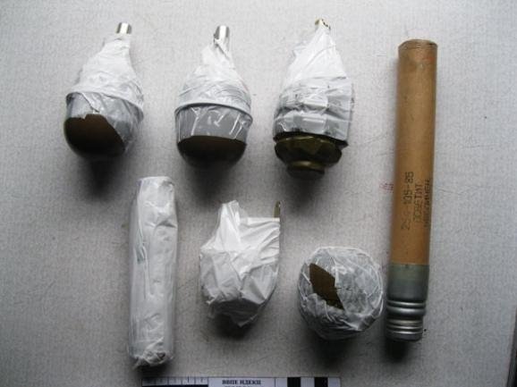 Приїхавши на місце оперативники, кінологи і вибухотехніки оглянули знахідку. При огляді купе вибухотехнічною службою виявлено чотири гранати (РГД-5 - 2 шт., Ф-1 – 1шт., РГН – 1шт), одну сигнальну ракетницю та один патрон діаметром 32 мм., довжиною 130 мм.