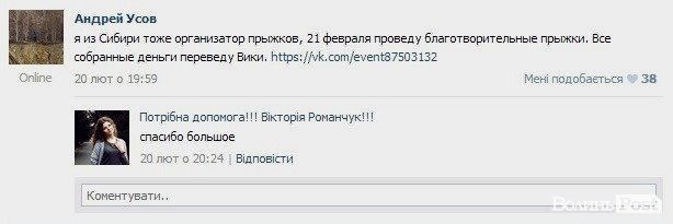 У спільноті «Потрібна допомога!!! Вікторія Романчук!!!» у соцмережі Вконтакте також зазначається, що на лікування Вікторії надходили кошти не лише з різних міст України, а й з Росії.