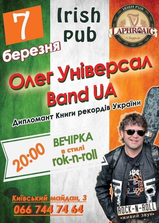 Як повідомляють організатори, він виступить із новою українською програмою 7 березня в ірландському пабі "Laphroaig". Початок о 20:00.