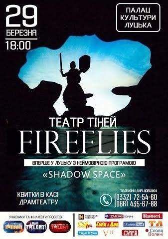 Fireflies – творча команда, що працює в жанрі театру тіней з 2010 р. Фіналісти телевізійних талант шоу «Україна має талант», (Україна), «Хвилина слави», (Росія), «Mam Talent», (Польща), «Das Supertalent», (Німеччина).Театр тіней Fireflies виступає на численних регіональних та міжнародних сценах, бере участь у різноманітних фестивалях, конкурсах, урочистих церемоніях, преміях та інших заходах.
