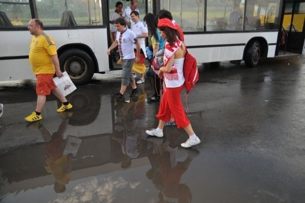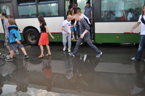 Крім того, фанів Португалії висаджували в калюжі. Автобуси зупинялися перед нею. Виходячи, люди ступали зразу у воду. Через то багато з них матюкалися.