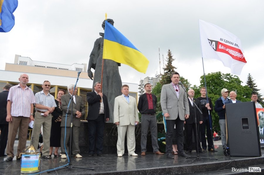 На віче не бракувало палких промов - лідера волинської «Батьківщини» Анатолія Грицюка, очільника виборчого штабу об’єднаної опозиції Ігоря Гузя, керівника місцевої «Свободи» Анатолія Вітіва, лідера осередку партії Реформи і порядок Олександра Мартинюка та інших. Чи не найемоційнішим і несподіваним став виступ лідера ВО «Свобода» Олега Тягнибока.